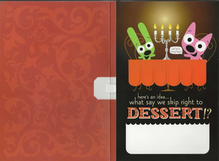 "Here's an idea...What say we skip right to DESSERT?!" with Hoops and Yoyo both sitting at a fancy table with candles in the middle. Hoops says "Oui! Let le loving begin!".