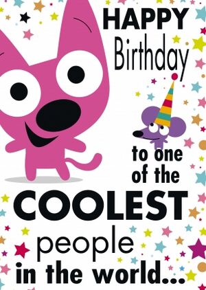 Happy Birthday To One Of The Coolest People In The World... is possibly an Dutch greeting card which features Puck and Hoops, it's unknown what language this card was meant to be, most likely Cards being an Dutch card.