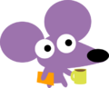 Puck is a purple rodent with large ears, an elliptical black nose and small eyes. He’s one of the smaller critters, though his size tends to shift in promotional material, sometimes appearing around the same height as Piddles, and other times shown even smaller.